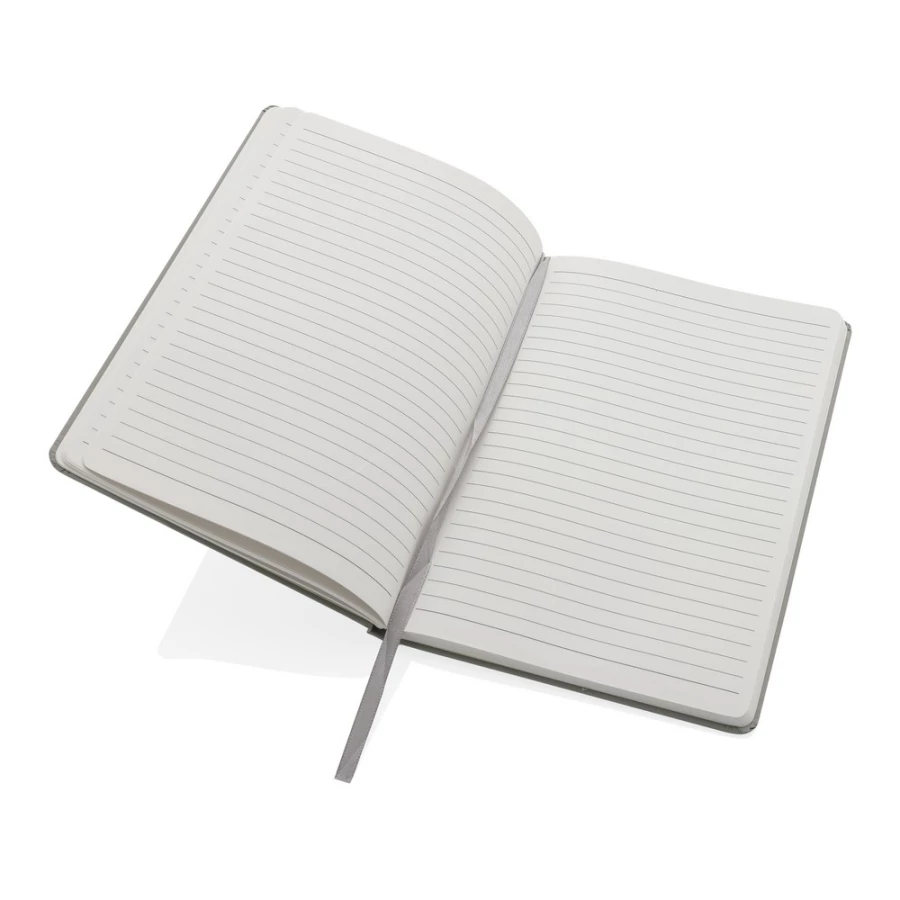 Notatnik A5 (64 białe kartki 58 g/m2 w linie), twarda okładka, notatnik wykonany z papieru kamiennego, który składa się w 80% z proszku mineralnego i 20% nietoksycznego HDPE (czysty plastik), 2% wpływów z każdego sprzedanego produktu z kolekcji Impact jest przekazywane na rzecz Water.org
