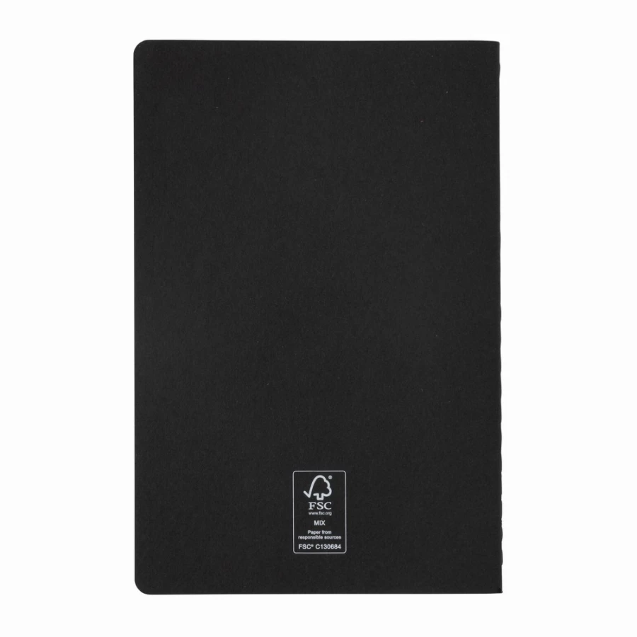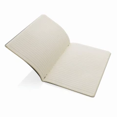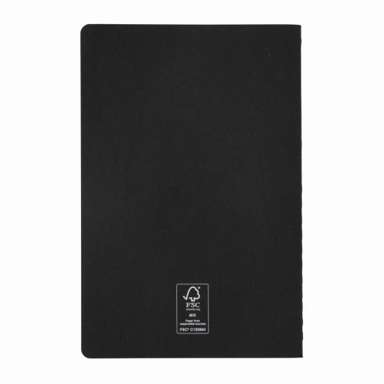 Notatnik A5, (46 kremowych kartek w linie), miękka okładka, okładka oraz strony wewnętrzne posiadają certyfikat FSC® (Forest Stewardship Council), ślad węglowy produktu: 0,25 kg CO2