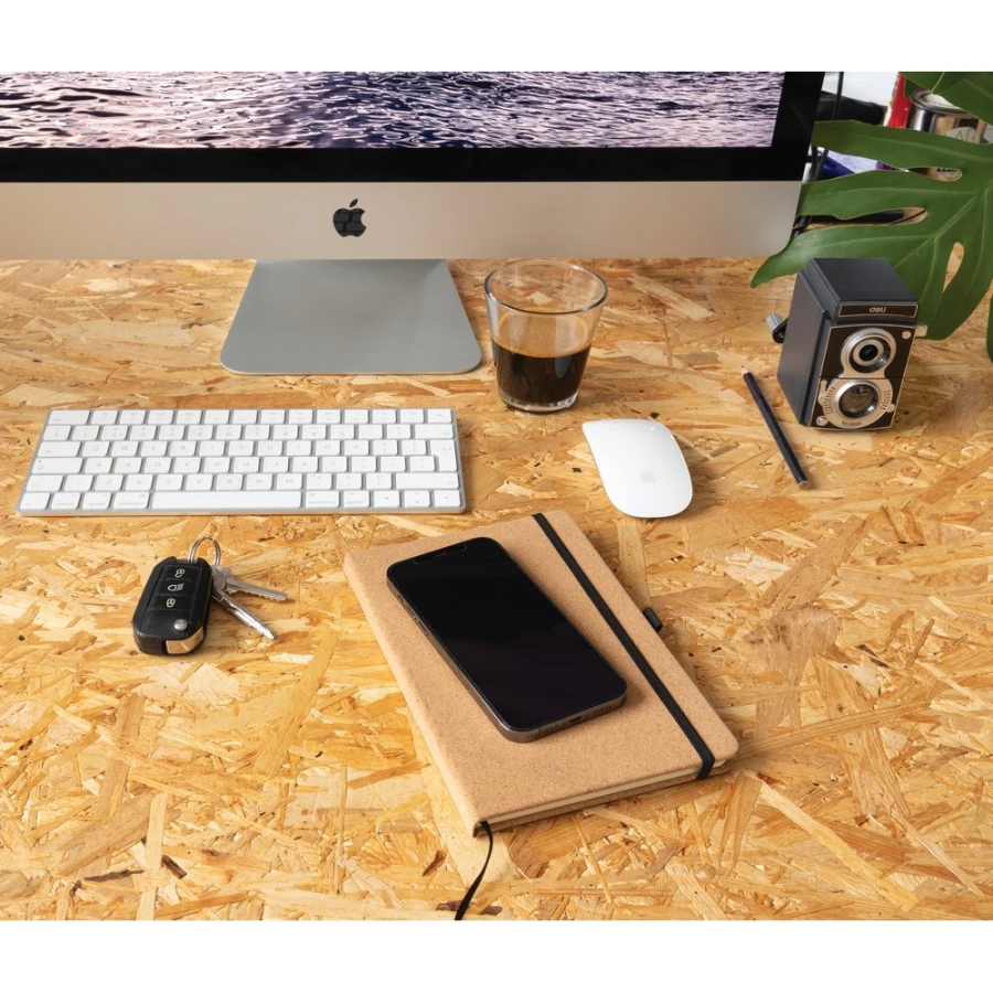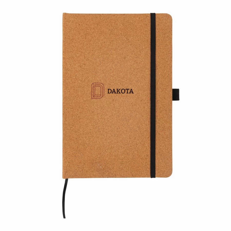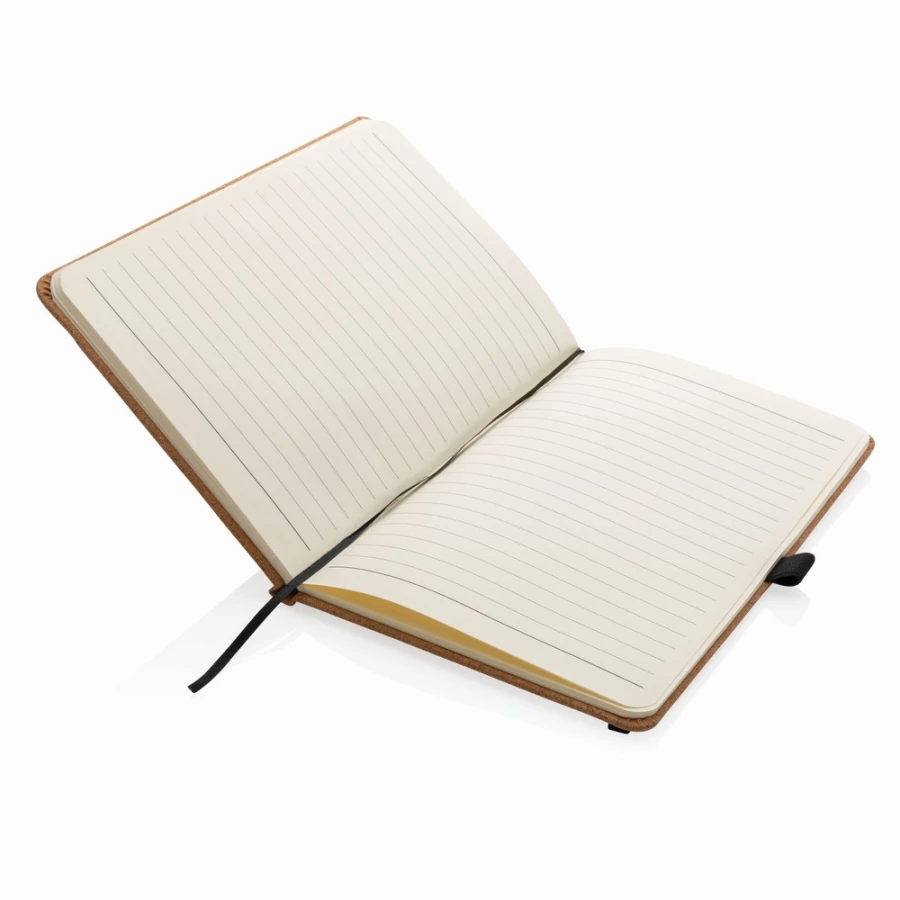 Notatnik A5 (96 kremowych kartek 70 g/m2 w linie), twarda, korkowa okładka, pętla na przybory do pisania, elastyczna opaska do zamykania, ślad węglowy produktu: 0,66 kg CO2