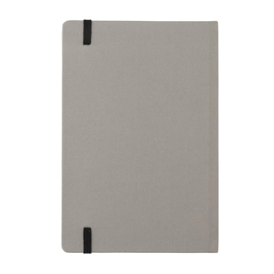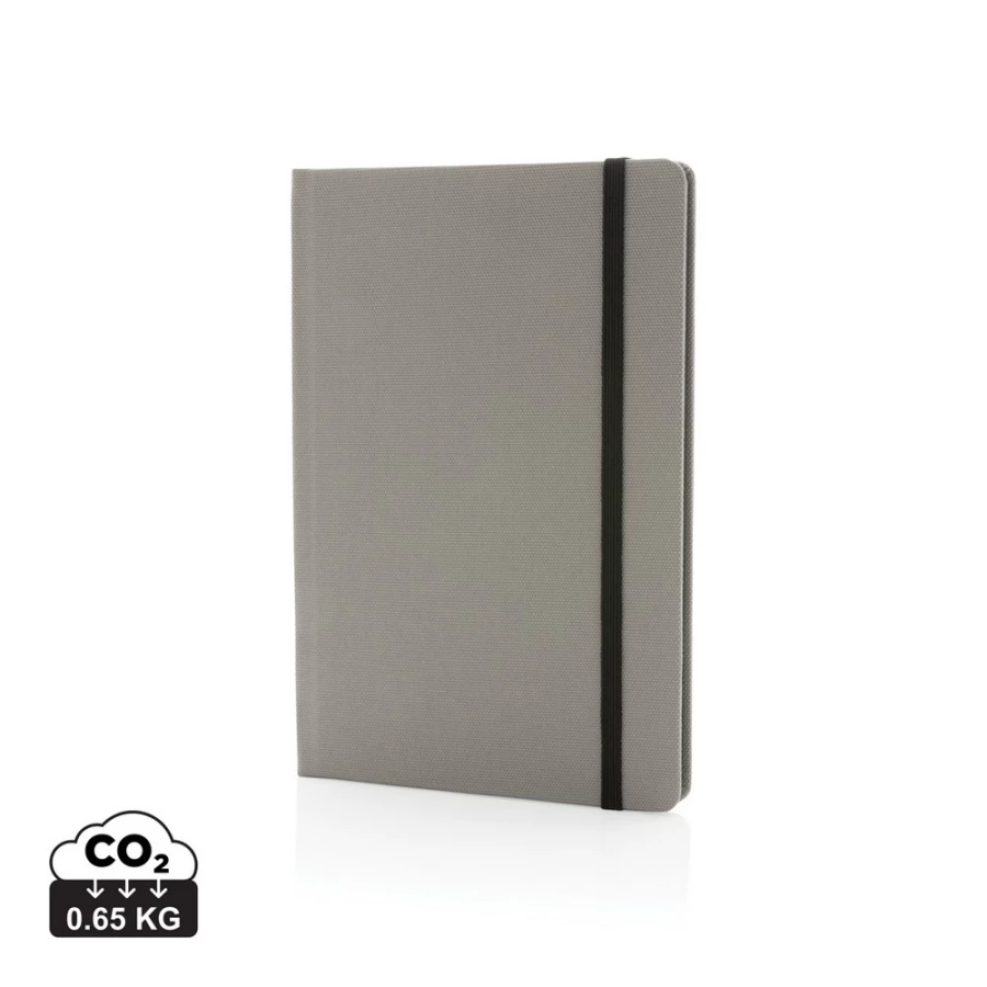 Notatnik (80 kartek 70g/m2 w linie), wykonany z materiałów pochodzących z recyklingu z certyfikatem GRS, całkowita zawartość materiałów z recyklingu obliczona na podstawie wagi całkowitej produktu: 68%, ślad węglowy produktu: 0,65 kg CO2