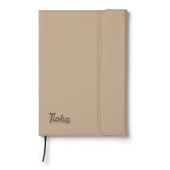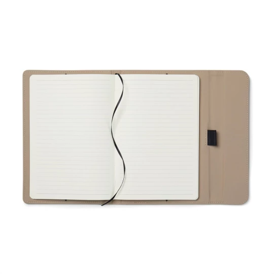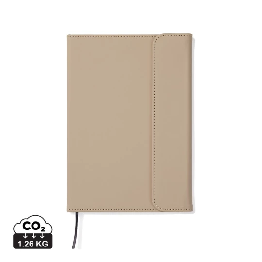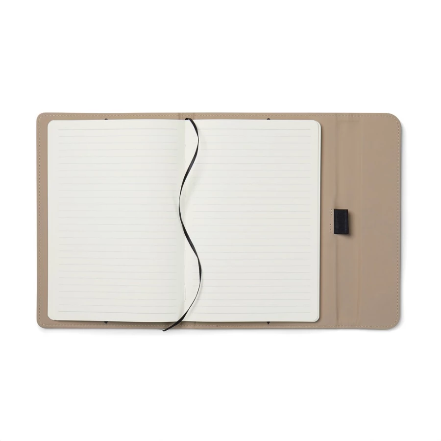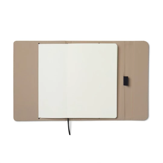 Notatnik A5 (80 kartek w linie o gramaturze 70 g/m2), okładka wykonana z PU z recyklingu, kartki z papieru makulaturowego