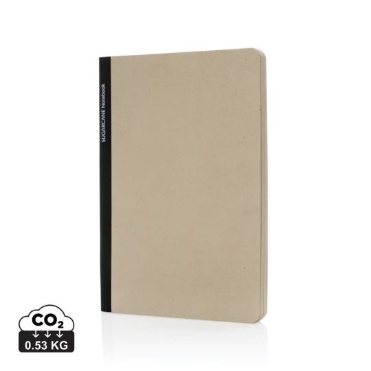 Notatnik (80 kremowych kartek 80 g/m2 w linie), wykonany z papieru z certyfikatem FSC®, okładka z trzciny cukrowej z certyfikatem Bonscuro, który gwarantuje zrównoważoną uprawę i handel trzciną cukrową, ślad węglowy produktu: 0,53 kg CO2