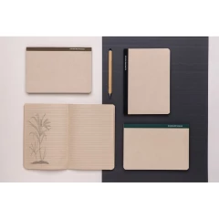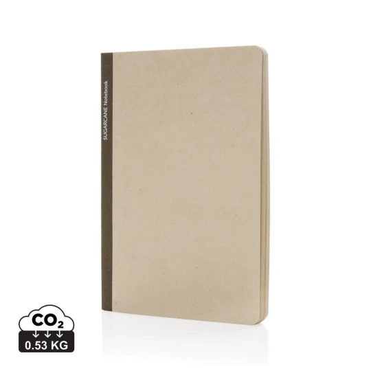 Notatnik (80 kremowych kartek 80 g/m2 w linie), wykonany z papieru z certyfikatem FSC®, okładka z trzciny cukrowej z certyfikatem Bonscuro, który gwarantuje zrównoważoną uprawę i handel trzciną cukrową, ślad węglowy produktu: 0,53 kg CO2
