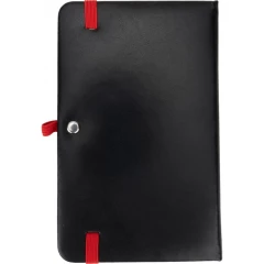 Notatnik A6 w okładce ze skóry syntetycznej, ze 160 stronami w linie, zakładką, pętelką na długopis i gumką do zamykania.