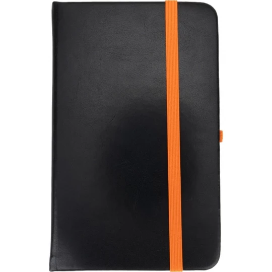 Notatnik A6 w okładce ze skóry syntetycznej, ze 160 stronami w linie, zakładką, pętelką na długopis i gumką do zamykania.