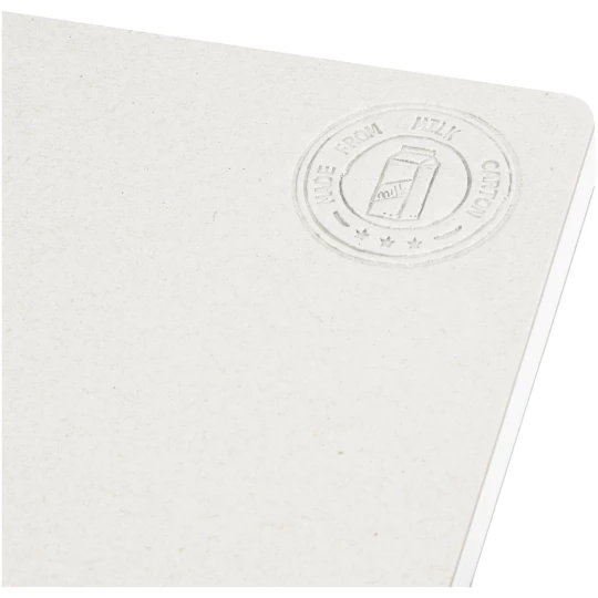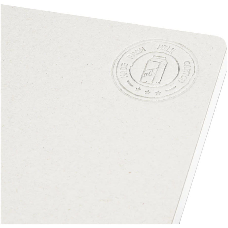 Notatnik bez grzbietu w formacie A5 z 80 kartkami w linie o gramaturze 80 g/m², wykonany z kartonów po mleku pochodzących z recyklingu (do 70%). Zużyte kartony po mleku są zbierane, sortowane, przetwarzane i zamieniane w papier, co pozwala na przekształcenie odpadów w coś użytecznego.