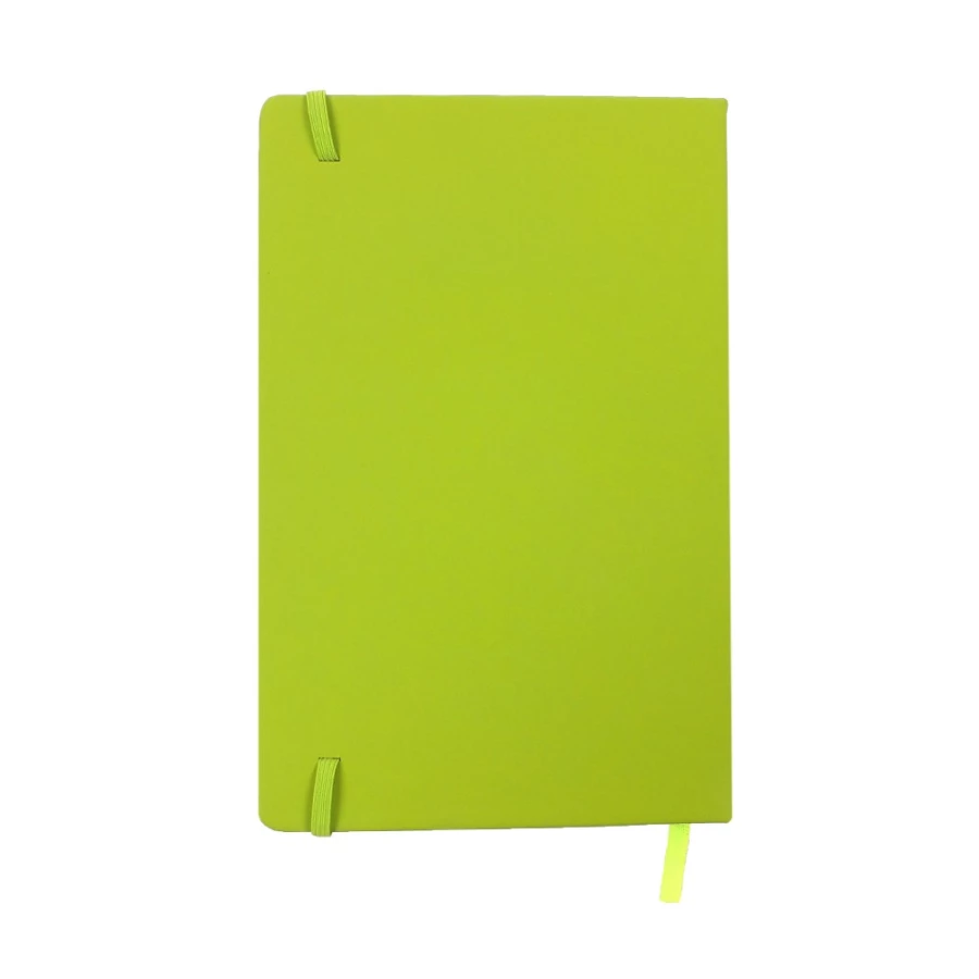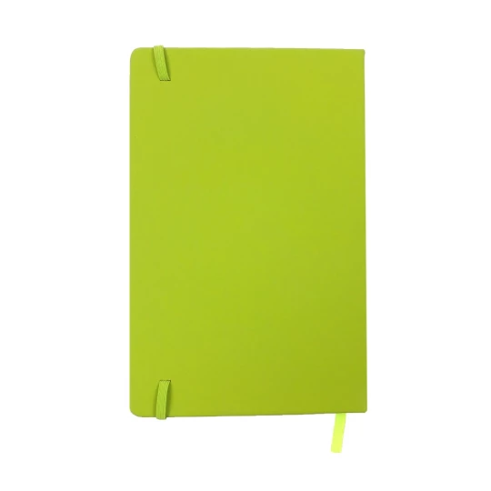 Notatnik w formacie ok. A5, posiada 96 kartek w linie (192 strony), tasiemka zakładkowa umożliwia wygodne zaznaczanie ostatniej strony lub ważniejszych notatek, dodatkowe zamknięcie w postaci dopasowanej kolorystycznie elastycznej opaski, twarda okładka wykonana z PU