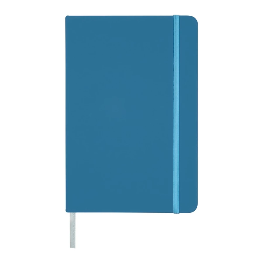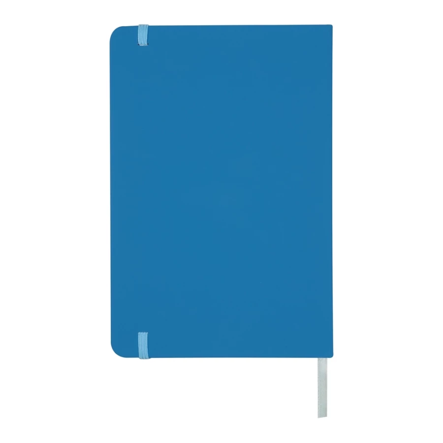 Notatnik w formacie ok. A5, posiada 96 kartek w linie (192 strony), tasiemka zakładkowa umożliwia wygodne zaznaczanie ostatniej strony lub ważniejszych notatek, dodatkowe zamknięcie w postaci dopasowanej kolorystycznie elastycznej opaski, twarda okładka wykonana z PU
