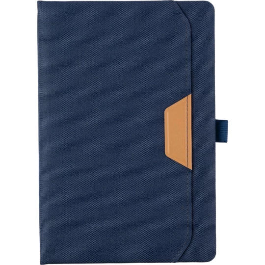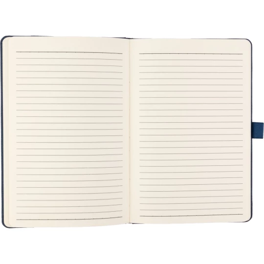 Notatnik w formacie ok. A5, posiada 100 stron w linie, zmieści się do szkolnego plecaka, pakowany pojedynczo w bibułkę, produkt wykonany z RPET