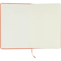 Notatnik ok. A5 RPET, z twardą okładką wykonaną z RPET PU, zawierający 80 stron w linie (70 g/m²), tasiemka zakładkowa umożliwia wygodne zaznaczanie ostatniej strony lub ważniejszych notatek, dodatkowe zamknięcie w postaci kolorowej elastycznej opaski, ikona recyklingu na tylnej stronie