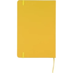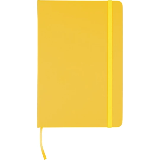 Notatnik ok. A5 RPET, z twardą okładką wykonaną z RPET PU, zawierający 80 stron w linie (70 g/m²), tasiemka zakładkowa umożliwia wygodne zaznaczanie ostatniej strony lub ważniejszych notatek, dodatkowe zamknięcie w postaci kolorowej elastycznej opaski, ikona recyklingu na tylnej stronie