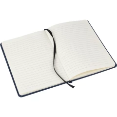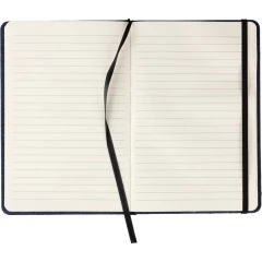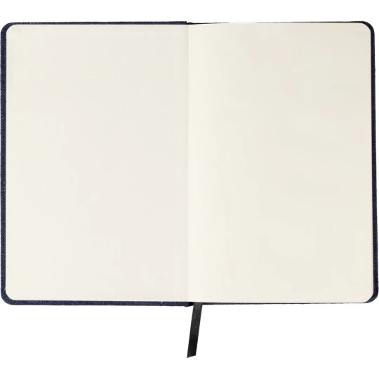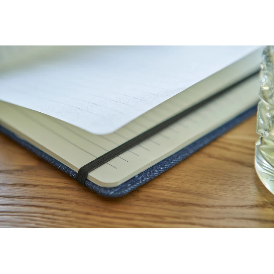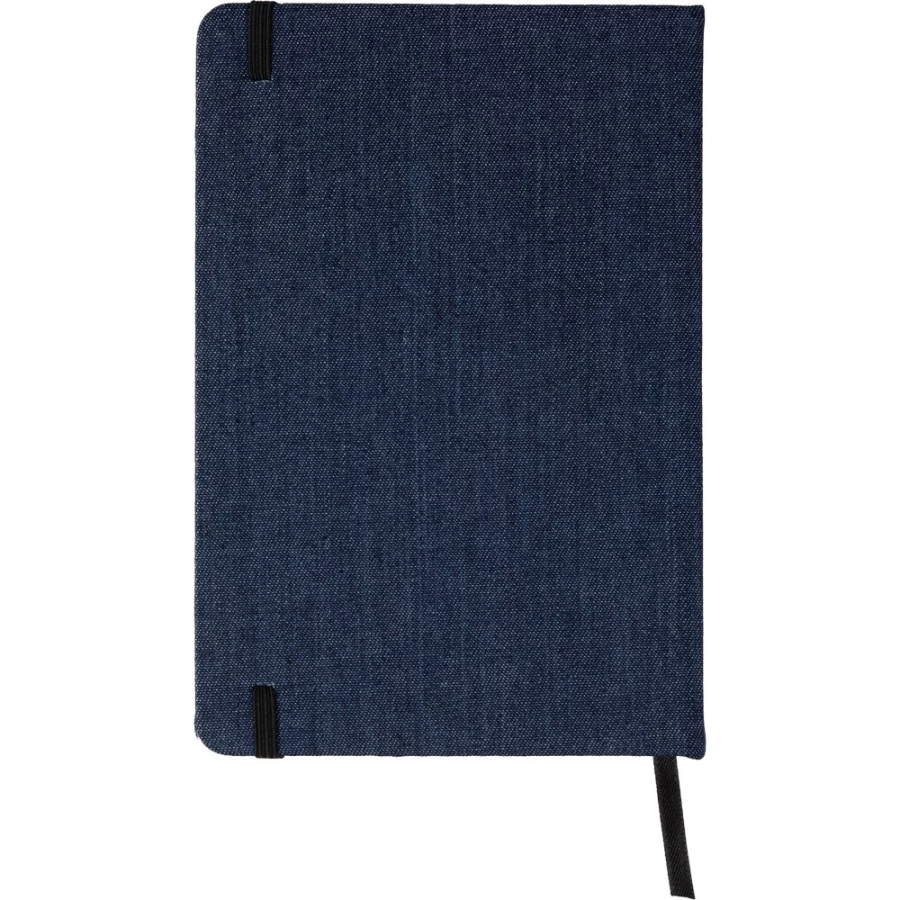 Notatnik ok. A5, posiada 80 stron w linie, elegancka okładka, tasiemka zakładkowa umożliwia wygodne zaznaczanie ostatniej strony lub ważniejszych notatek, zmieści się do szkolnego plecaka, dodatkowe zamknięcie w postaci dopasowanej kolorystycznie elastycznej opaski, produkt wykonany z denimu