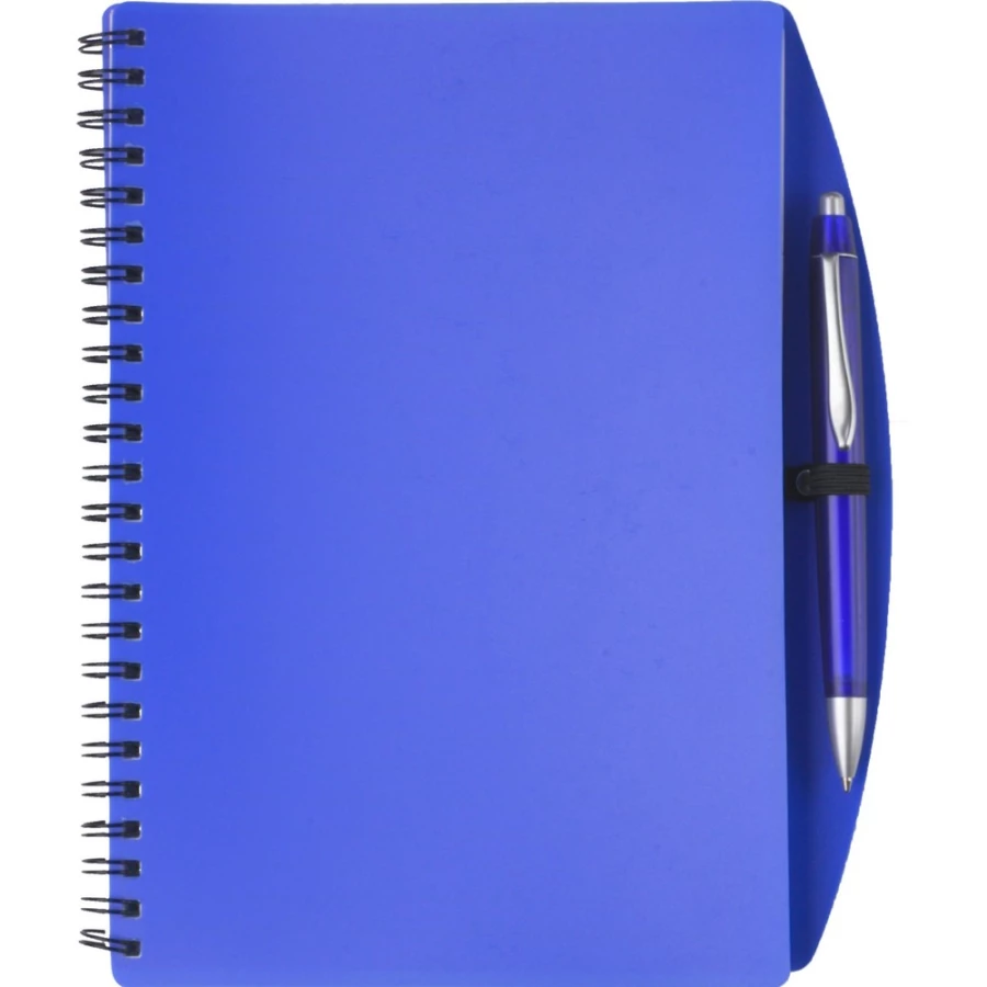 Notatnik (ok. A5, 65 kartek w linie) z długopisem, spiralne bindowanie