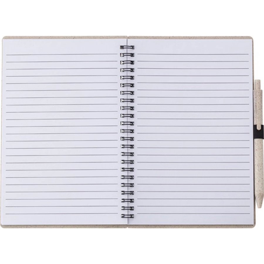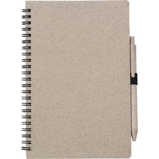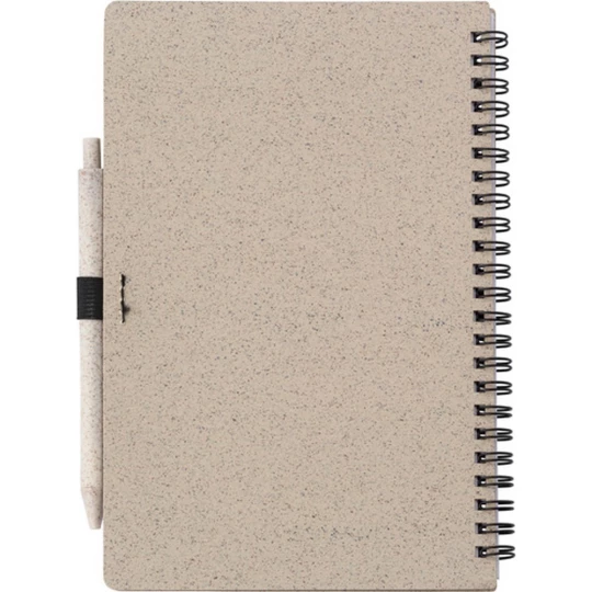 Notatnik ok. A5 (70 kartek w linie), okładka ze słomy pszenicznej i PP, długopis ze słomy pszenicznej, spiralne bindowanie