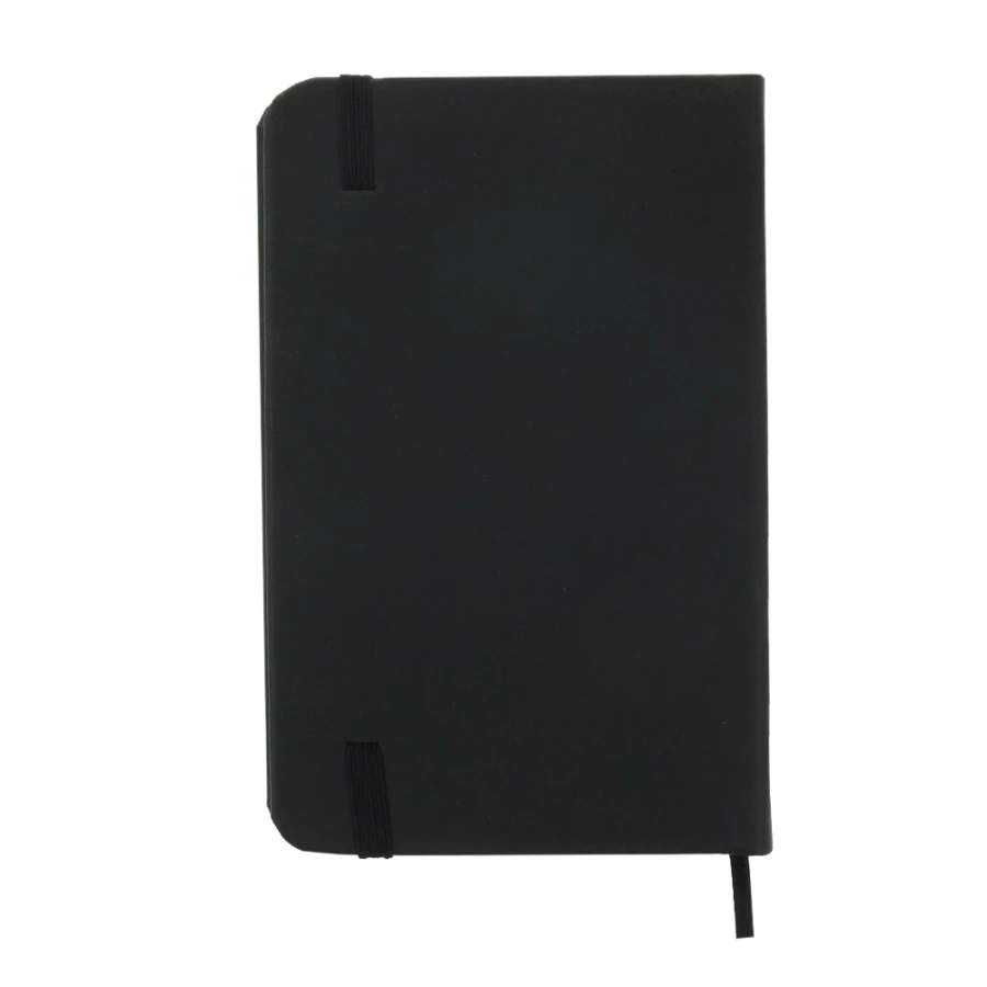 Notatnik w kieszonkowym formacie ok. A6, posiada 96 kartek w linie (192 strony), tasiemka zakładkowa umożliwia wygodne zaznaczanie ostatniej strony lub ważniejszych notatek, dodatkowe zamknięcie w postaci dopasowanej kolorystycznie elastycznej opaski, twarda okładka wykonana z PU