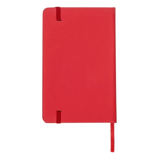 Notatnik w kieszonkowym formacie ok. A6, posiada 96 kartek w linie (192 strony), tasiemka zakładkowa umożliwia wygodne zaznaczanie ostatniej strony lub ważniejszych notatek, dodatkowe zamknięcie w postaci dopasowanej kolorystycznie elastycznej opaski, twarda okładka wykonana z PU
