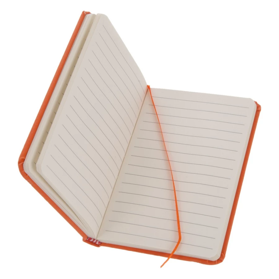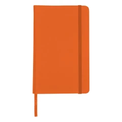 Notatnik w kieszonkowym formacie ok. A6, posiada 96 kartek w linie (192 strony), tasiemka zakładkowa umożliwia wygodne zaznaczanie ostatniej strony lub ważniejszych notatek, dodatkowe zamknięcie w postaci dopasowanej kolorystycznie elastycznej opaski, twarda okładka wykonana z PU