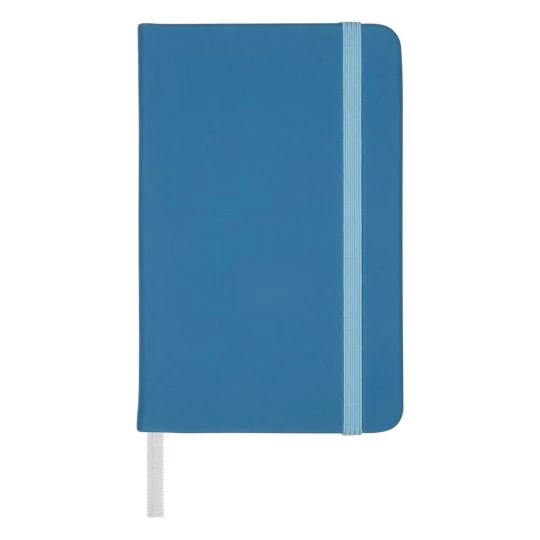 Notatnik w kieszonkowym formacie ok. A6, posiada 96 kartek w linie (192 strony), tasiemka zakładkowa umożliwia wygodne zaznaczanie ostatniej strony lub ważniejszych notatek, dodatkowe zamknięcie w postaci dopasowanej kolorystycznie elastycznej opaski, twarda okładka wykonana z PU