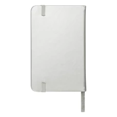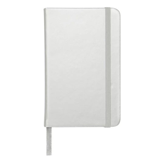 Notatnik w kieszonkowym formacie ok. A6, posiada 96 kartek w linie (192 strony), tasiemka zakładkowa umożliwia wygodne zaznaczanie ostatniej strony lub ważniejszych notatek, dodatkowe zamknięcie w postaci dopasowanej kolorystycznie elastycznej opaski, twarda okładka wykonana z PU