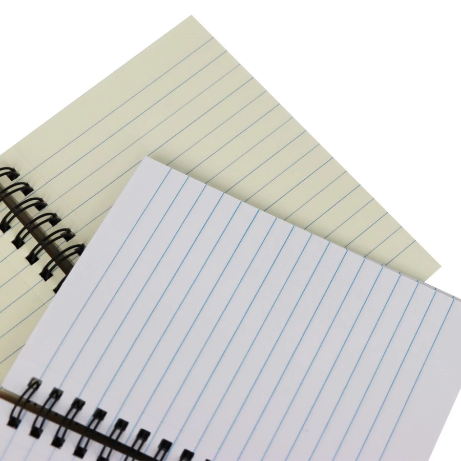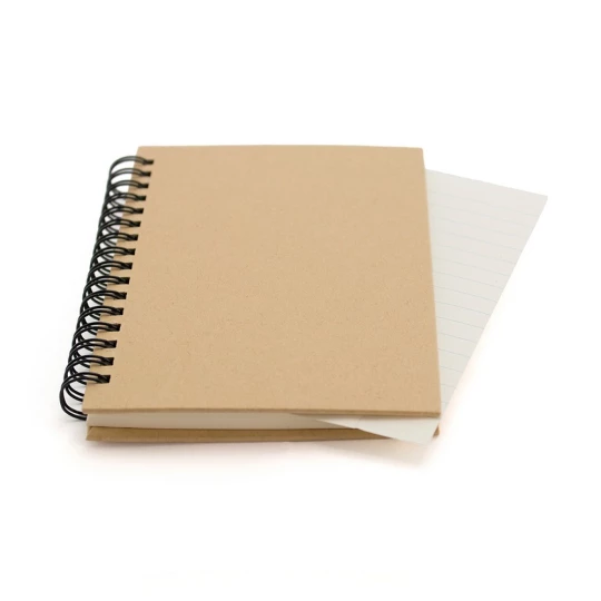 Notatnik (ok. A6, 80 kartek w linie), twarda okładka, spiralne bindowanie (kartki w kolorze białym lub kremowym w zależności od egzemplarza)
