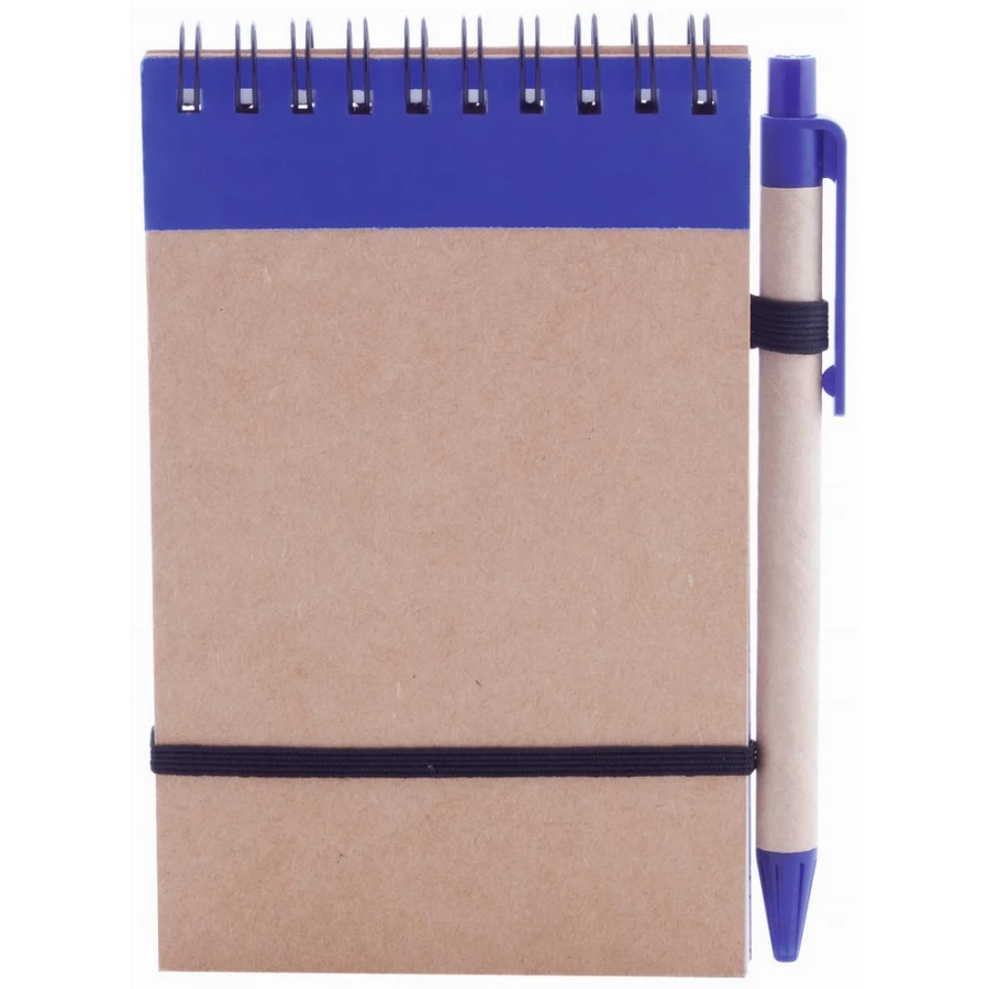 Notatnik (ok. A6, 70 kartek w linie) z długopisem, elastyczna opaska do zamykania, twarda okładka, spiralne bindowanie