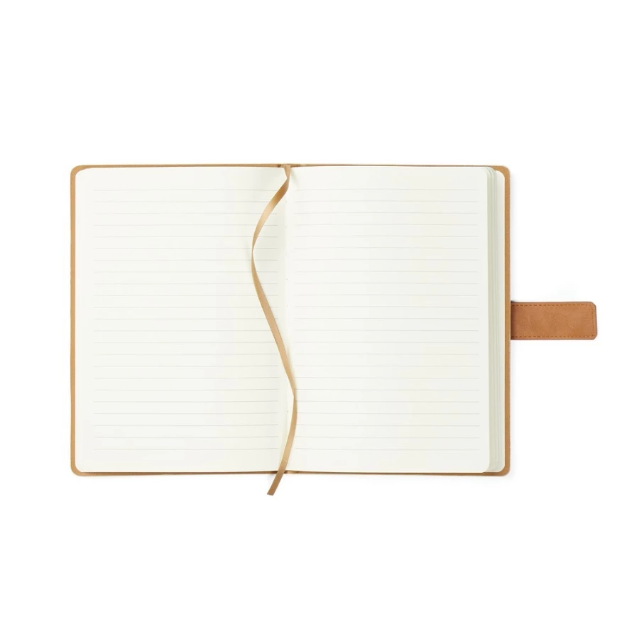 Notatnik (80 białych kartek 80 g/m2 w linie), opaska z PU, zamknięcie na magnes, wykonany z materiałów pochodzących z recyklingu z certyfikatem RCS, całkowita zawartość materiałów z recyklingu obliczona w oparciu o wagę całkowitą przedmiotu: 65%