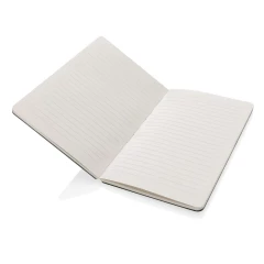 Notatnik (96 białych kartek 80 g/m2 w linie), wykonany z materiałów pochodzących z recyklingu z certyfikatem GRS, całkowita zawartość materiałów z recyklingu obliczona na podstawie wagi całkowitej przedmiotu: 99%, ślad węglowy produktu: 0,91 kg CO2