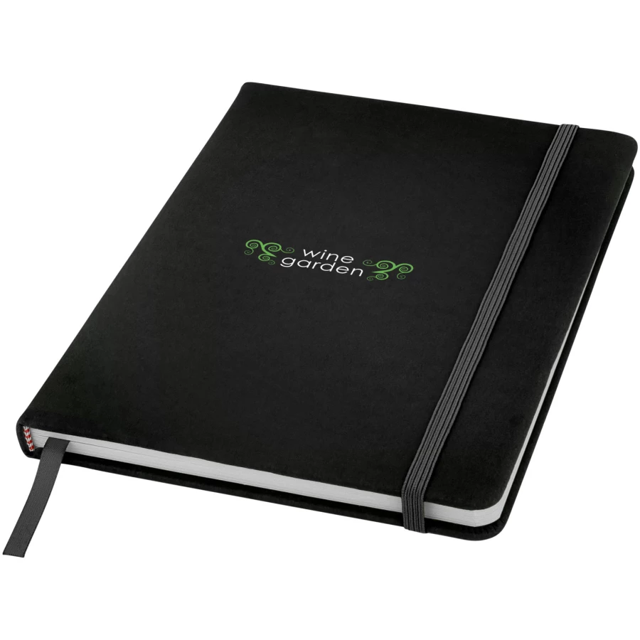 Notes A5 z kolorowym zamknięciem na gumkę i wstążką. Zawiera 96 gładkich kartek (60 g/m2).