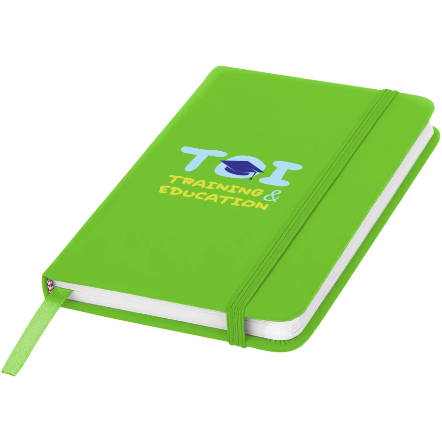 Notatnik Spectrum jest nie tylko niezbędnym elementem wyposażenia biura, ale również doskonałym narzędziem do promocji marki. Notatnik w twardej oprawie wykonany jest z kartonu pokrytego miękką w dotyku okładką z PU. 96 kartek w linie o gramaturze 60 g/m², wykonanych z ekologicznych surowców, jest idealnych do notowania szybkich pomysłów lub długich notatek. Format A6 jest praktyczny, ponieważ bez problemu mieści się w przeciętnej torebce i jest łatwy do trzymania. Wstążka zakładki i elastyczne zamknięcie są w tym samym kolorze.