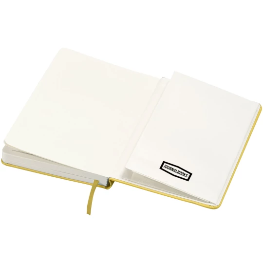 Objęty wzorem zastrzeżonym, klasyczny notatnik A5 z twardą okładką, zamykany na gumkę. Zawiera 80 kartek (80 g/m²) w linie, idealnych do zapisywania i dzielenia się notatkami. Z tyłu ma rozkładaną kieszonkę na małe karteczki. Dołączone etui upominkowe Journalbooks.