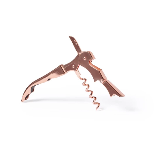 Nóż kelnerski, otwieracz do butelek, korkociąg, nóż do folii, miedziane wykończenie