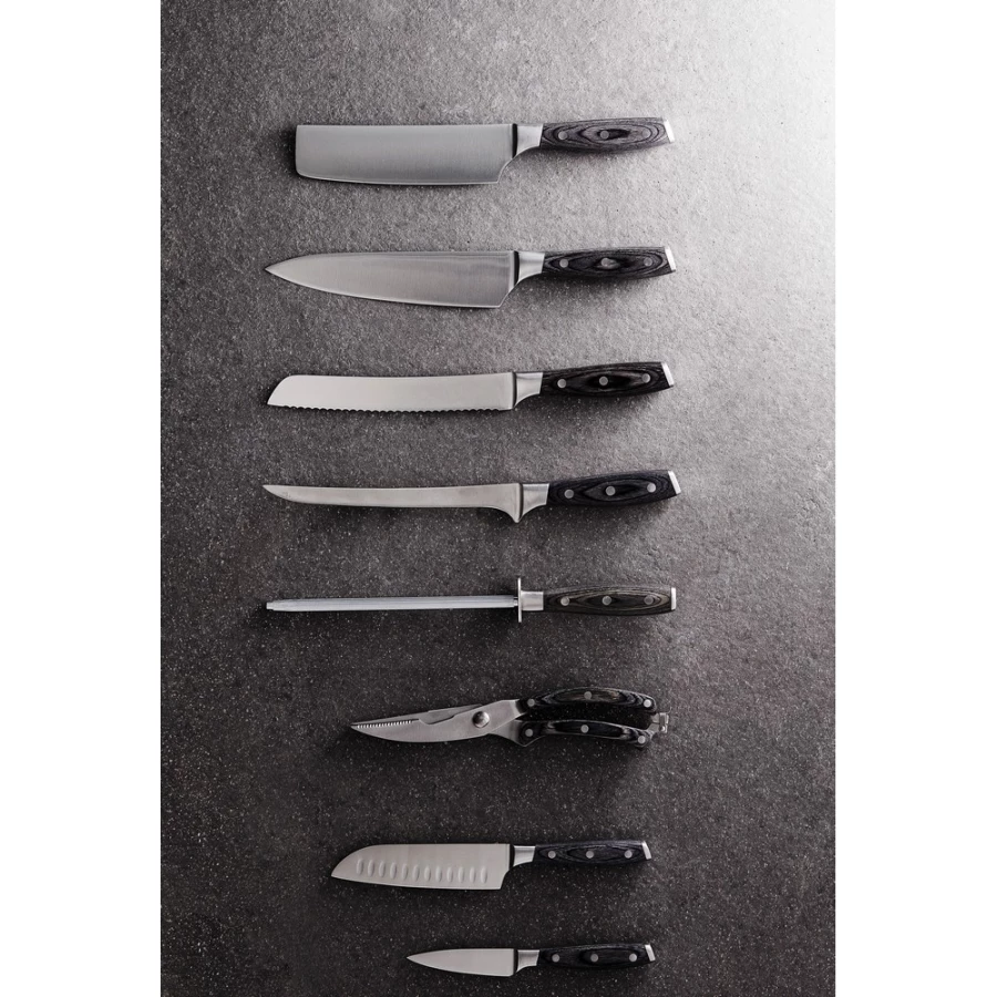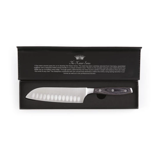 Nóż kuchenny, wykonany z niemieckiej stali nierdzewnej, drewniana rękojeść, długość ostrza: 14 cm
