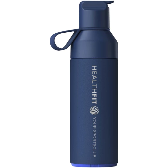 Ocean Bottle GO bidon o pojemności 500 ml z podwójnie izolowanymi ściankami, dzięki czemu utrzymuje niską temperaturę napojów nawet przez osiemnaście godzin oraz funkcją podwójnego otwierania, przez co doskonale nadaje się do podróży. Bidon ma szczelną pokrywkę i łatwo się go napełnia, czyści oraz dodaje do niego lodu. Bidon GO ma wszystkie najlepsze cechy oryginalnego bidonu Ocean Bottle, a jednocześnie bardziej sportowy kształt, umożliwiający trzymanie go tylko jedną ręką podczas picia. Każdy bidon Ocean Bottle jest całkowicie neutralny pod względem emisji dwutlenku węgla i odpowiada za zebranie 1000 plastikowych butelek, aby poprawić warunki życia społeczności przybrzeżnych. Bidon jest wykonany w 90% ze stali nierdzewnej pochodzącej z recyklingu i innych materiałów pochodzących z recyklingu. Ze względu na silikonową słomkę bidon GO może być używany wyłącznie do zimnych napojów. Zapakowany w pudełko upominkowe wykonane z kartonu z recyklingu.