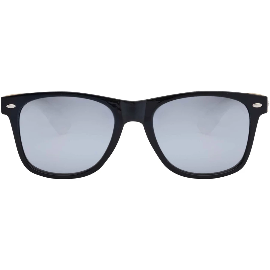 Stylowe okulary przeciwsłoneczne z kolorowymi szkłami i bambusowymi zausznikami. Soczewki UV 400 chronią przed szkodliwym promieniowaniem ultrafioletowym. Zgodność z normą bezpieczeństwa UE EN12312-1.