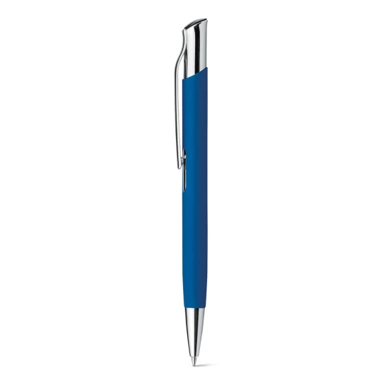 Aluminiowy długopis z gumowymi wykończeniami i klipem. Niebieski tusz. ø10 x 137 mm