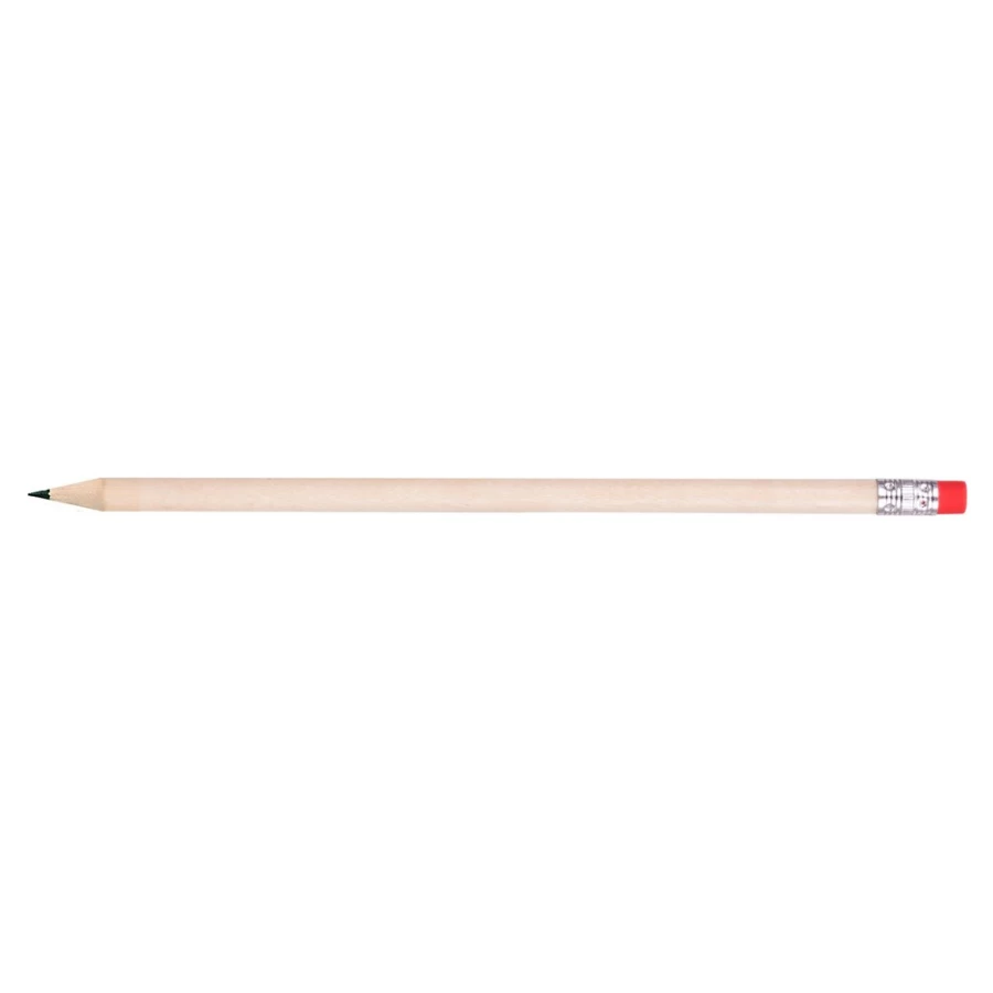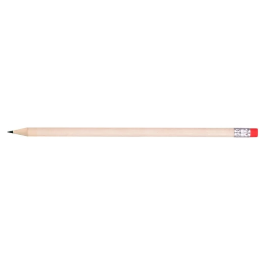 Ołówek z gumką, posiada naostrzoną końcówkę, produkt wykonany z drewna