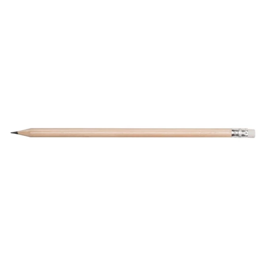 Ołówek z gumką i kolorowym trzonem, posiada naostrzoną końcówkę, produkt wykonany z drewna