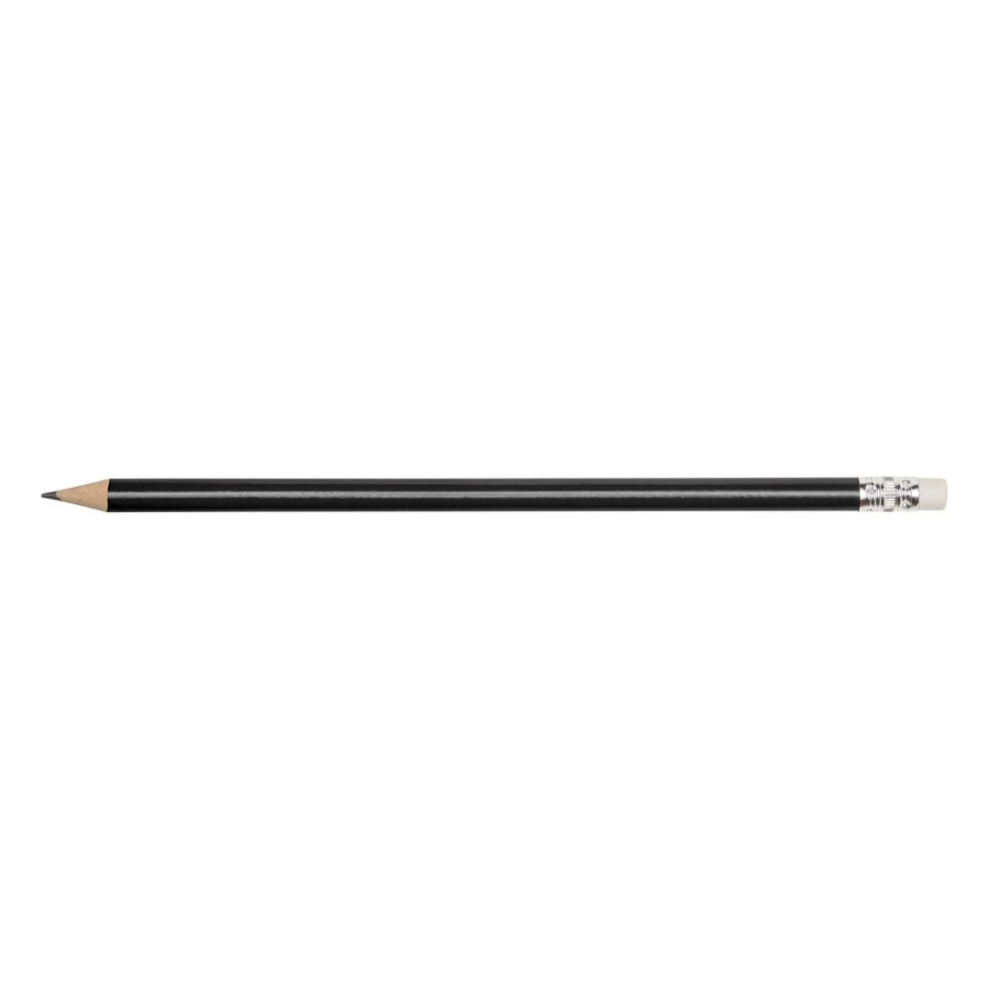 Ołówek z gumką i kolorowym trzonem, posiada naostrzoną końcówkę, produkt wykonany z drewna