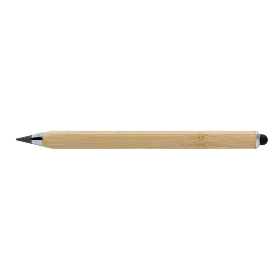 Ołówek, linijka, touch pen, wykonany z bambusa, dzięki wykorzystaniu specjalnej wolnościerającej się grafitowej końcówki długość pisania ołówka to około 20 000 metrów w porównaniu z tradycyjnym ołówkiem którego długość pisania to około 200 metrów, notatki można zmazać standardową gumką do mazania