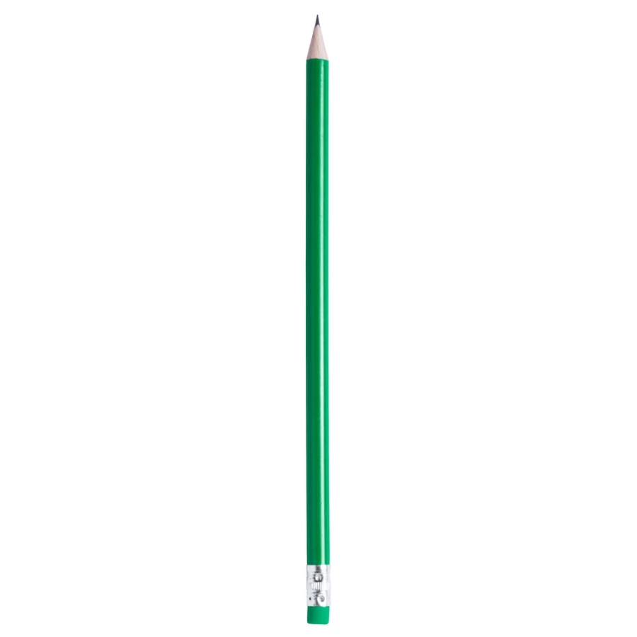 Ołówek z błyszczącym wykończeniem i dopasowaną kolorystycznie gumką, posiada naostrzoną końcówkę, produkt wykonany z drewna
