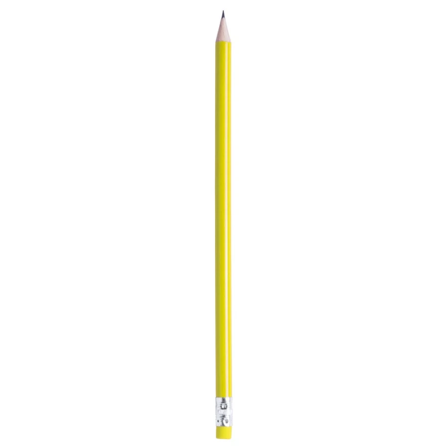 Ołówek z błyszczącym wykończeniem i dopasowaną kolorystycznie gumką, posiada naostrzoną końcówkę, produkt wykonany z drewna