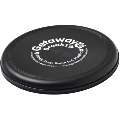 Frisbee made from 100% recycled plastic, combining a fun promotional idea with strong sustainable credentials. Made in the UK and compliant with EN72. The frisbee may have a speckled finish due to the nature of the recycled material. Diameter: 23 cm.
