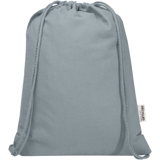 Torba ściągana sznurkiem Oregon Blend, wykonana w 60% bawełny z recyklingu z certyfikatem GRS i w 40% z RPET z certyfikatem GRS doskonale nadaje się na prezent promujący Twoją markę lub rozdawany podczas kampanii marketingowych. Ta lekka torba jest przystępna cenowo, łatwa do noszenia na plecach lub na ramieniu i oferuje wystarczająco dużo miejsca na logo lub inne treści. Sznurek ściągający ułatwia jej otwieranie i zamykanie, a bawełniany materiał o gramaturze 140 g/m² jest mocny i trwały. Duża główna komora z zamknięciem na bawełniany sznurek ściągający. Techniki nadruku dostępne dla tej torby posiadają również certyfikat GRS, co zapewnia, że cały łańcuch dostaw jest przejrzysty i certyfikowany. Wyprodukowano w Indiach. Wytrzymałość do 5 kg. Pojemność: 5 litrów.
