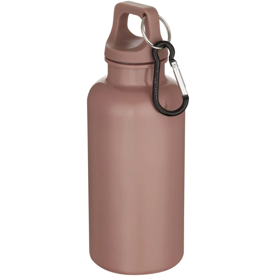 Oregon butelka na wodę o pojemności 400 ml z w jednolitym kolorze z karabińczykiem, wykonana z tworzyw sztucznych pochodzących z recyklingu z certyfik