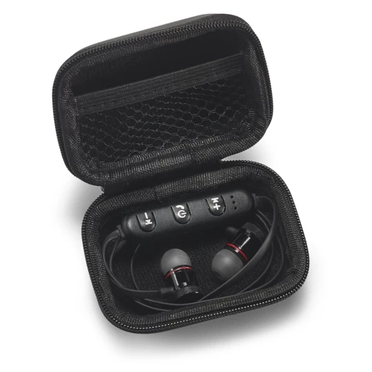Magnetyczne słuchawki bezprzewodowe o charakterystycznym, nowoczesnym wyglądzie. Ich kształt pozwala na noszenie ich na szyi, co zapewnia większy komfort. Dostarczane w etui z pianki EVA.Materiał: ABS z recyklingu (100% rABS), EVATransmisja bezprzewodowa: BT v4'1Pojemność: 55 mAhPrzybliżona żywotność baterii: 3 godzinyPrzybliżony czas ładowania: 1.5 godzinyPasmo przenoszenia: 20-20000 HzCzułość: 105 dB±3Impedancja: 16 omówMoc dźwięku: 16 mWŚrednica głośnika: 10 mmW zestawie: kabel USB-A / USB-C, 3 pary silikonowych adapterów (S - 11.5 mm, M - 12.5 mm, L – 13.5 mm)Opakowanie: torba EVAWymiary: 80 x 65 x 32 mm