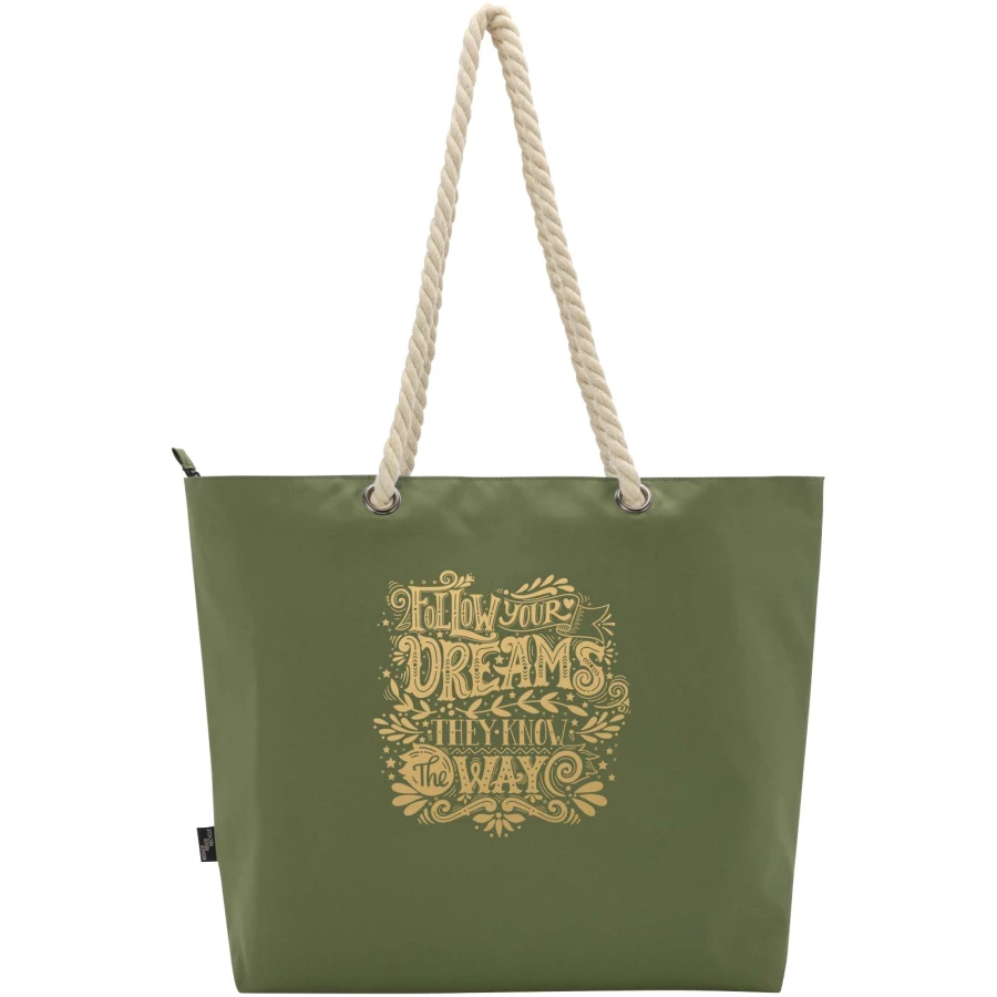Torba termiczna na zakupy Panama jest wykonana z poliestru z recyklingu z certyfikatem GRS. Ma dużą główną komorę zapinaną na zamek, wysokiej jakości folię aluminiową oraz uchwyty z bawełnianego sznurka. Nadaje się do różnych zastosowań, np. na zakupy spożywcze lub na dzień na plaży lub w parku. Pojemność: 23 litrów. Wytrzymałość do 10 kg. Wolne od PVC.