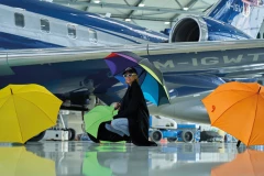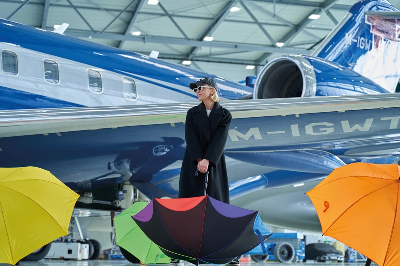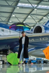 Duży parasol automatyczny z plastikową rączką wykonany z poliestru. Parasol wyróżnia się nietypowymi, dwukolorowymi panelami.
