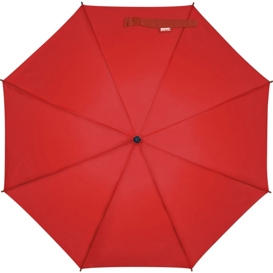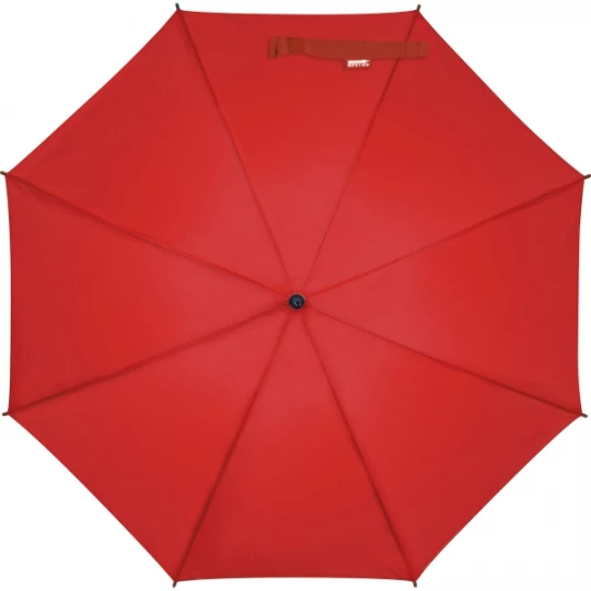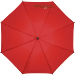 Automatyczny, wiatroodporny parasol, ze stelażem z włókna szklanego, panelami z poliestru RPET pochodzącego z recyklingu oraz zakrzywioną rączką z drewna.