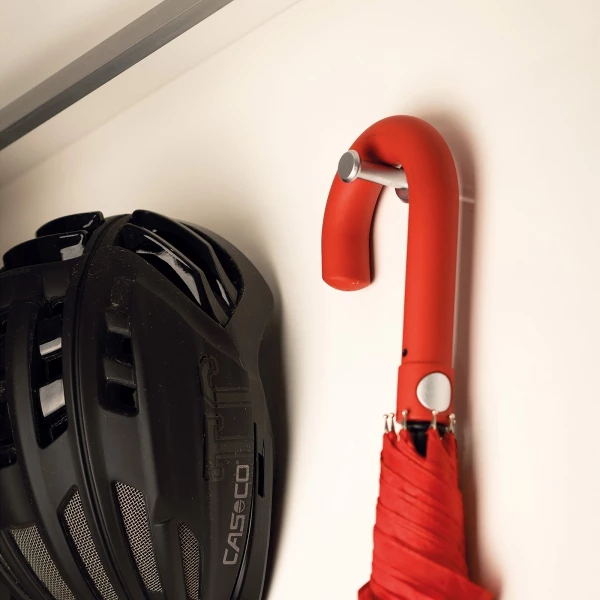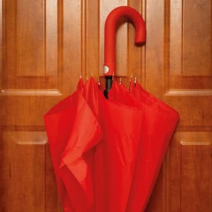 Parasol automatyczny z aluminiowym stelażem, metalową końcówką i gumowaną rączką.