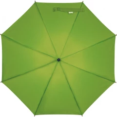 Automatyczny, wiatroodporny parasol, ze stelażem z włókna szklanego, panelami z poliestru RPET pochodzącego z recyklingu oraz zakrzywioną rączką z drewna.
